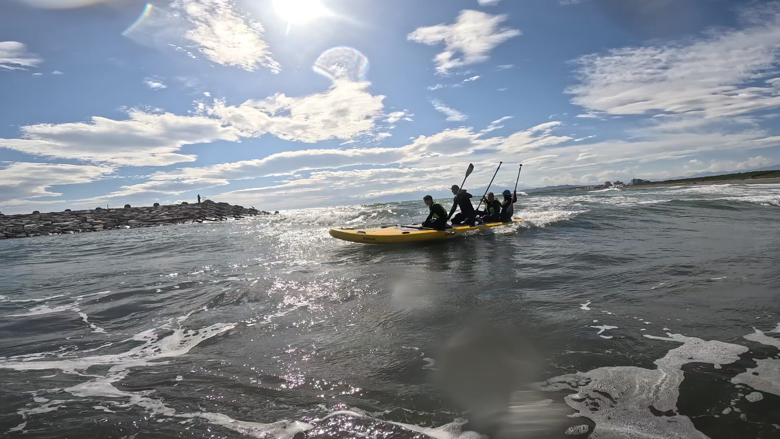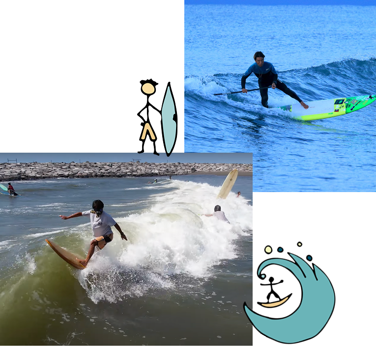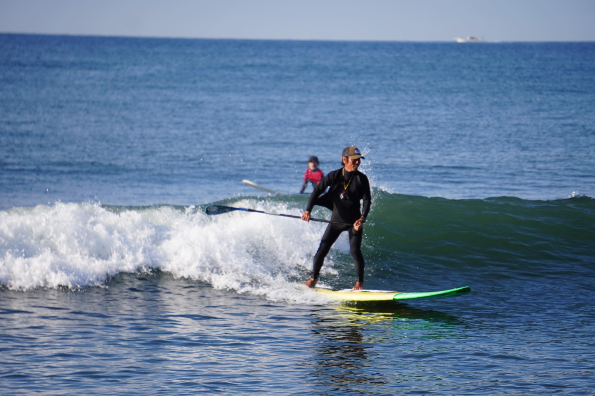 サーフィンやSUPレッスンを中心に、初心者から経験者まで、その日の波やコンディションに合わせてゆったりサポートしています。