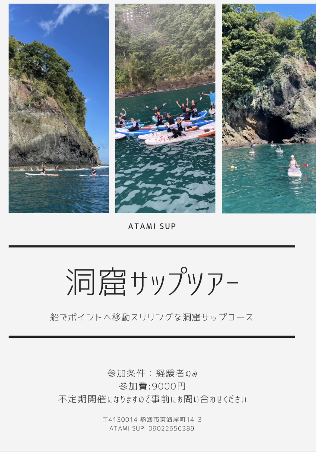 洞窟SUPコースなど熱海SUPツアーは、茅ヶ崎からもインストラクター帯同で参加することもできます。